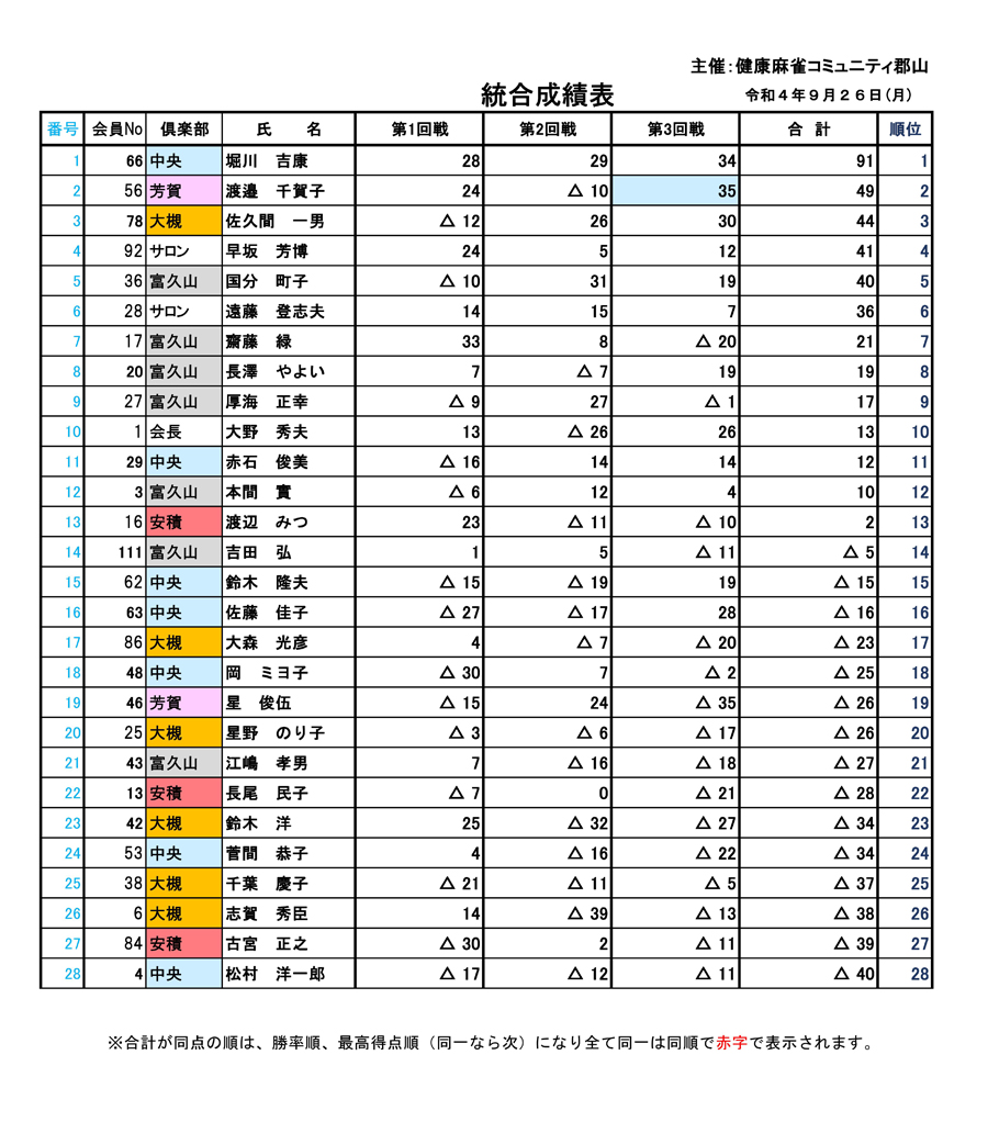 令和4年9月26日(月)中央公民館で13:00から9月倶楽部大会が開催されました。