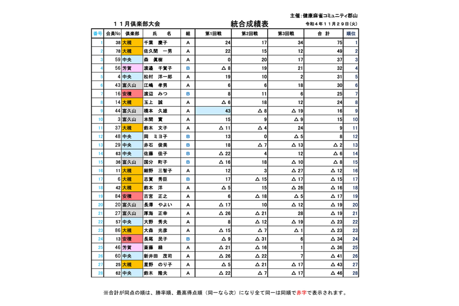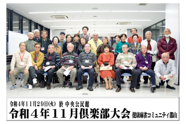 令和4年11月29日(月)中央公民館で13:00から11月倶楽部大会が開催されました。