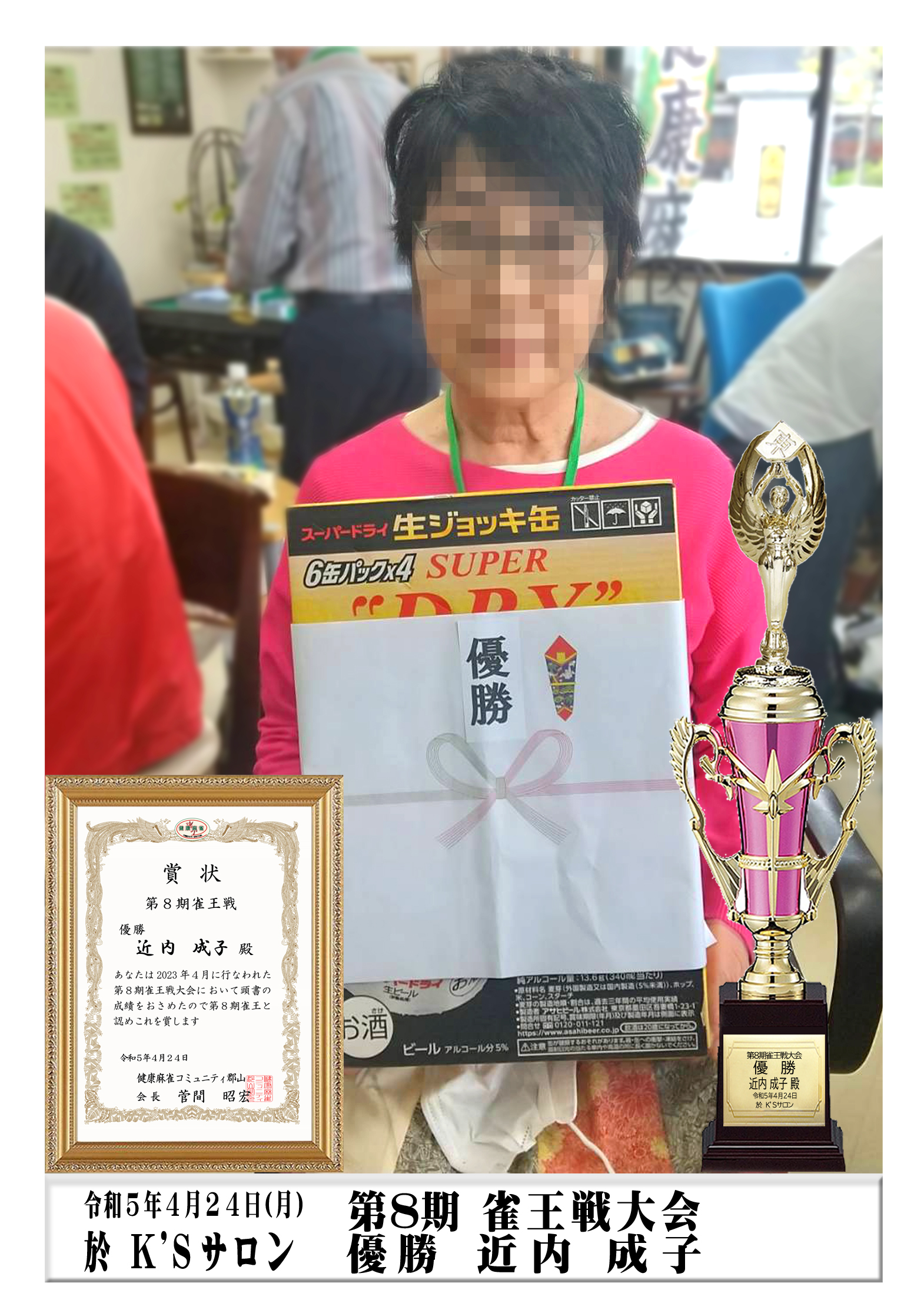 令和5年4月24日(月)K’Sサロンで10:00から第8期雀王戦大会が開催されました。