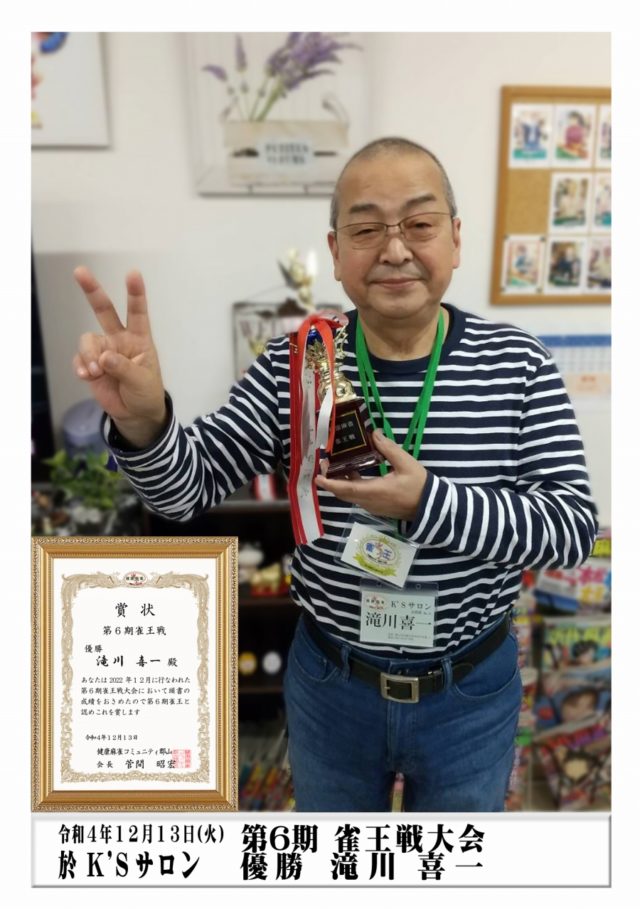 令和4年12月13日(火)K’Sサロンで10:00から6期雀王戦大会が開催されました。
