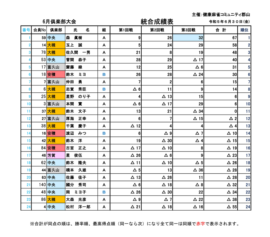 令和5年6月倶楽部大会結果