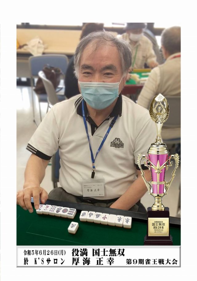 なお、この大会で厚海正幸さんが役満国士無双を和了しました。おめでとうございます!