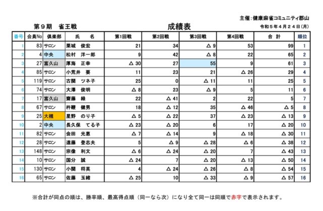K’Sサロンでは今後とも雀王戦大会を実施していきますので、大いに参加して楽しんでください。