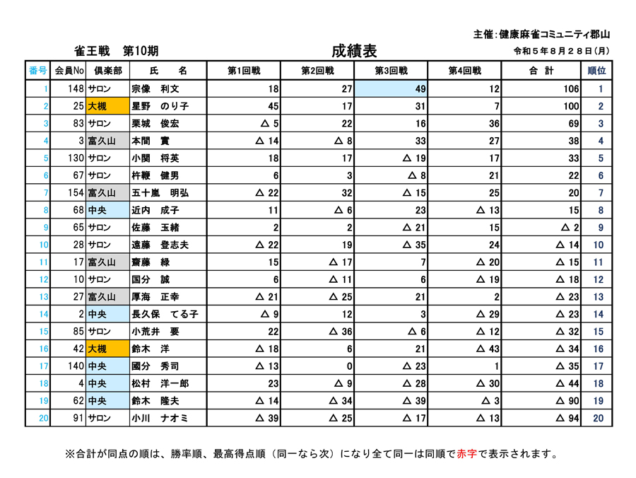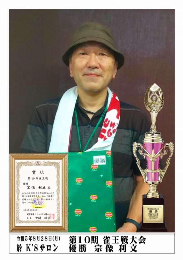 令和5年8月28日(月)K’Sサロンで10:00から第10期雀王戦大会が開催されました。
