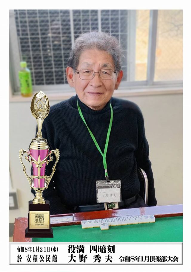 この大会で大野秀夫さんが役満四暗刻を和了しました。 おめでとうございます!