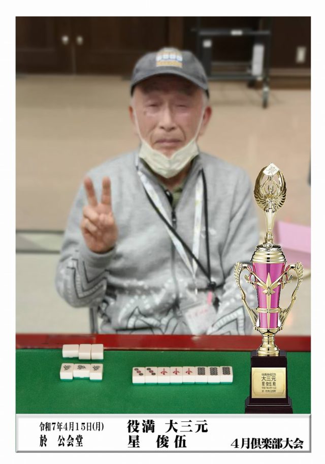 大会では、星俊伍さんと栁田道男さんが役満を和了しました。 おめでとうございます!