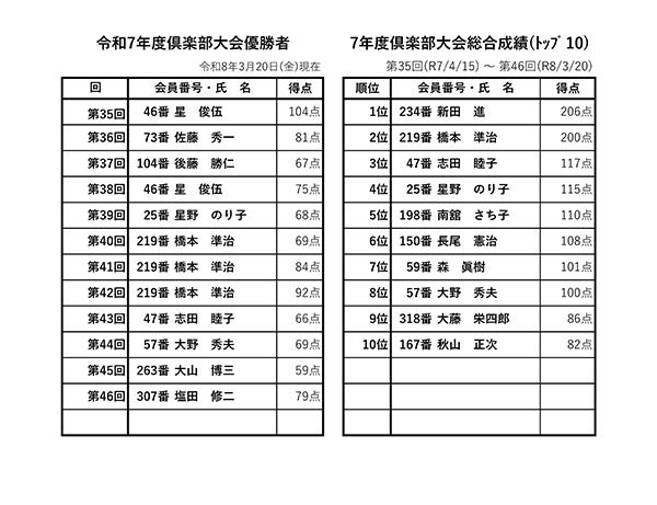 倶楽部大会の写真です。
