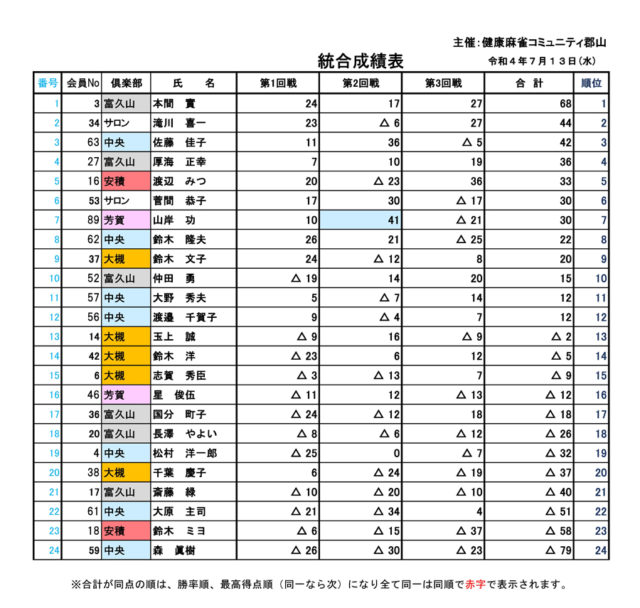 令和4年7月13日(水)緑ヶ丘地域公民館で13:00から7月倶楽部大会が開催されました。