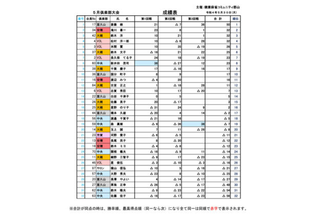 令和4年5月30日(月)小原田地域公民館で13:00から5月倶楽部大会が開催されました。