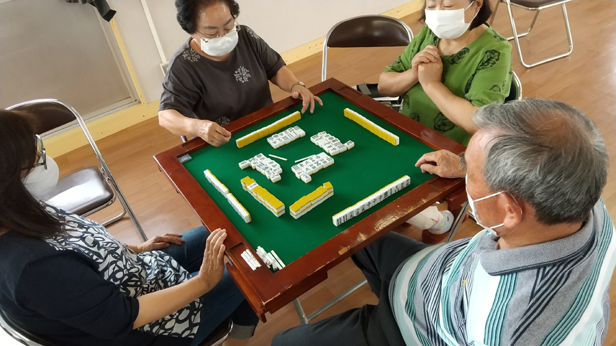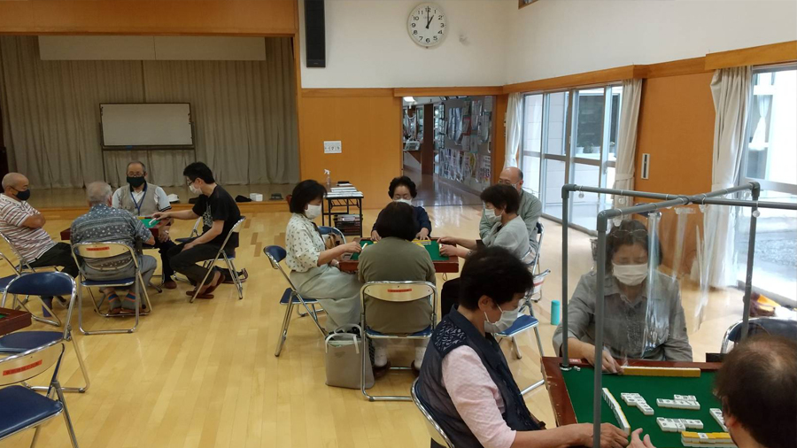 新型コロナ感染予防対策をしっかり取りながら皆さん麻雀を楽しんでいます。