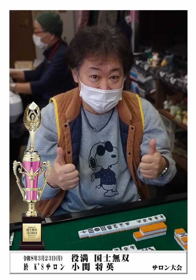 この大会で小関将英さんが役満国士無双を和了しました。おめでとうございます!